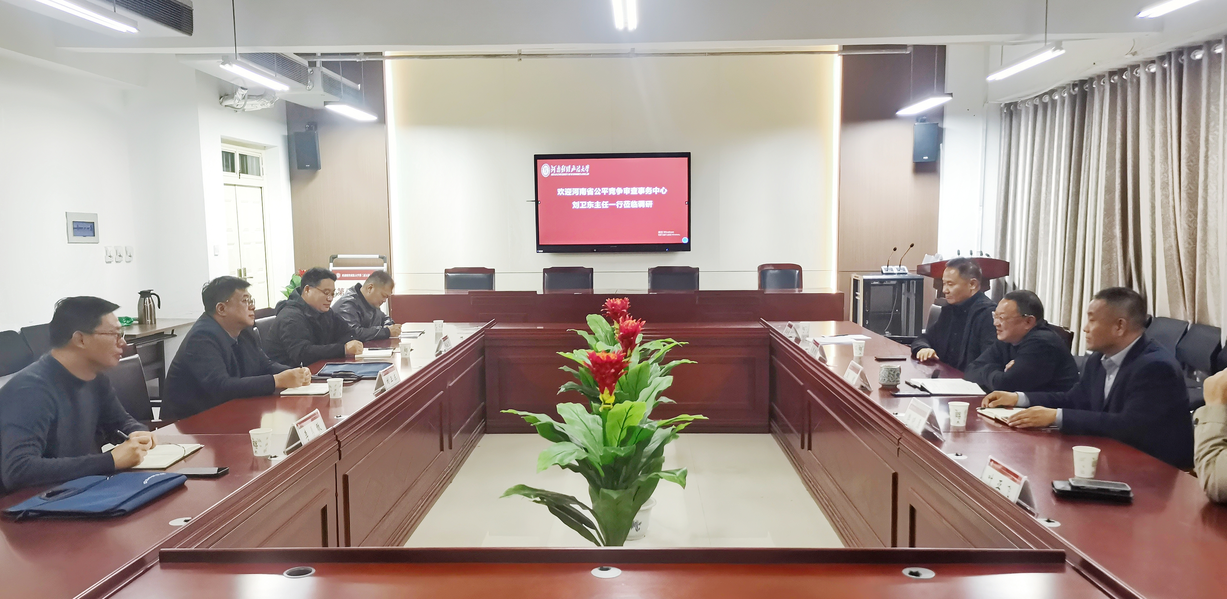 11月14日,河南省公平竞争审查事务中心刘卫东主任一行来我部调研。91无码精品书记王健、经济法学院(环境法学院)院长樊晓磊、91无码精品副部长张福刚、经济法学院(环境法学院)高重迎教授、民商法学院副教授叶亚飞参与本次调研座谈交流。