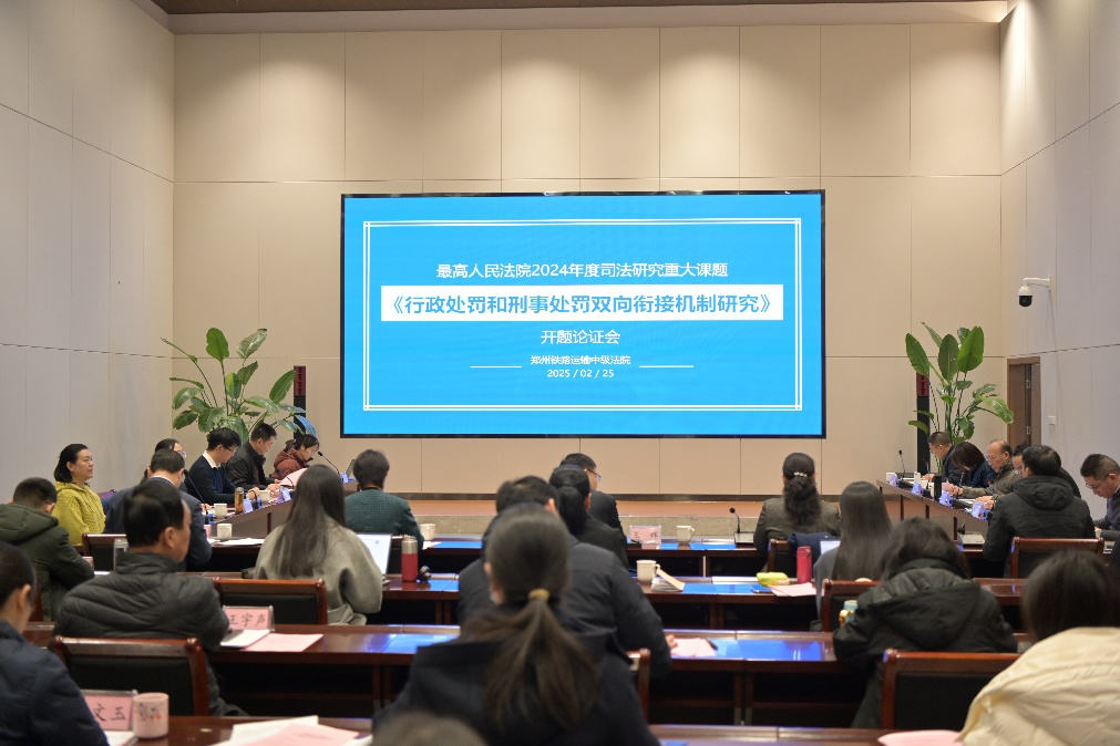2月25日上午,副校长陈晓景受郑州铁路运输中级法院邀请参加最高人民法院2024年度司法研究重大课题《行政处罚和刑事处罚双向衔接机制研究》开题论证会。受邀参加此次开题论证会的还有来自郑州大学、河南财政金融学院、河南博云天律师事务所、河南省高级人民法院、河南省人民检察院郑州铁路运输分院、郑州铁路运输中级法院、郑州铁路运输法院等单位相关领导和专家。91无码精品经济法学院(环境法学院)环境与资源保护法科研团队核心成员参加会议。