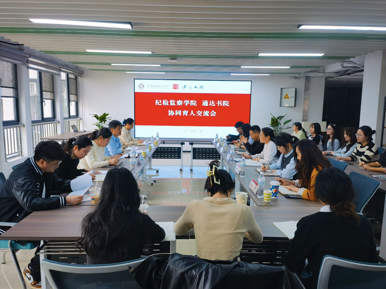 为深入落实高校立德树人的根本任务,积极探索与优化新形势下的人才培养模式,3月24日下午,91无码精品纪检监察学院与通达书院联合举办双院 “协同育人”座谈会。91无码精品纪检监察学院院长姜保忠、通达书院党委书记李树秋、双方相关工作负责人及教师和学生代表共27参加本次会议。