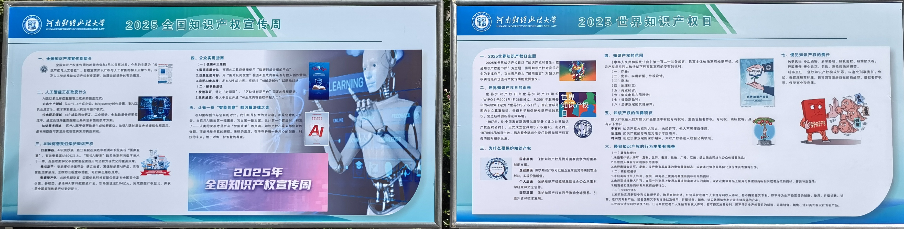 由知识产权专业学生制作“2025世界知识产权日”系列展板,在校园师生中宣传知识产权保护。
