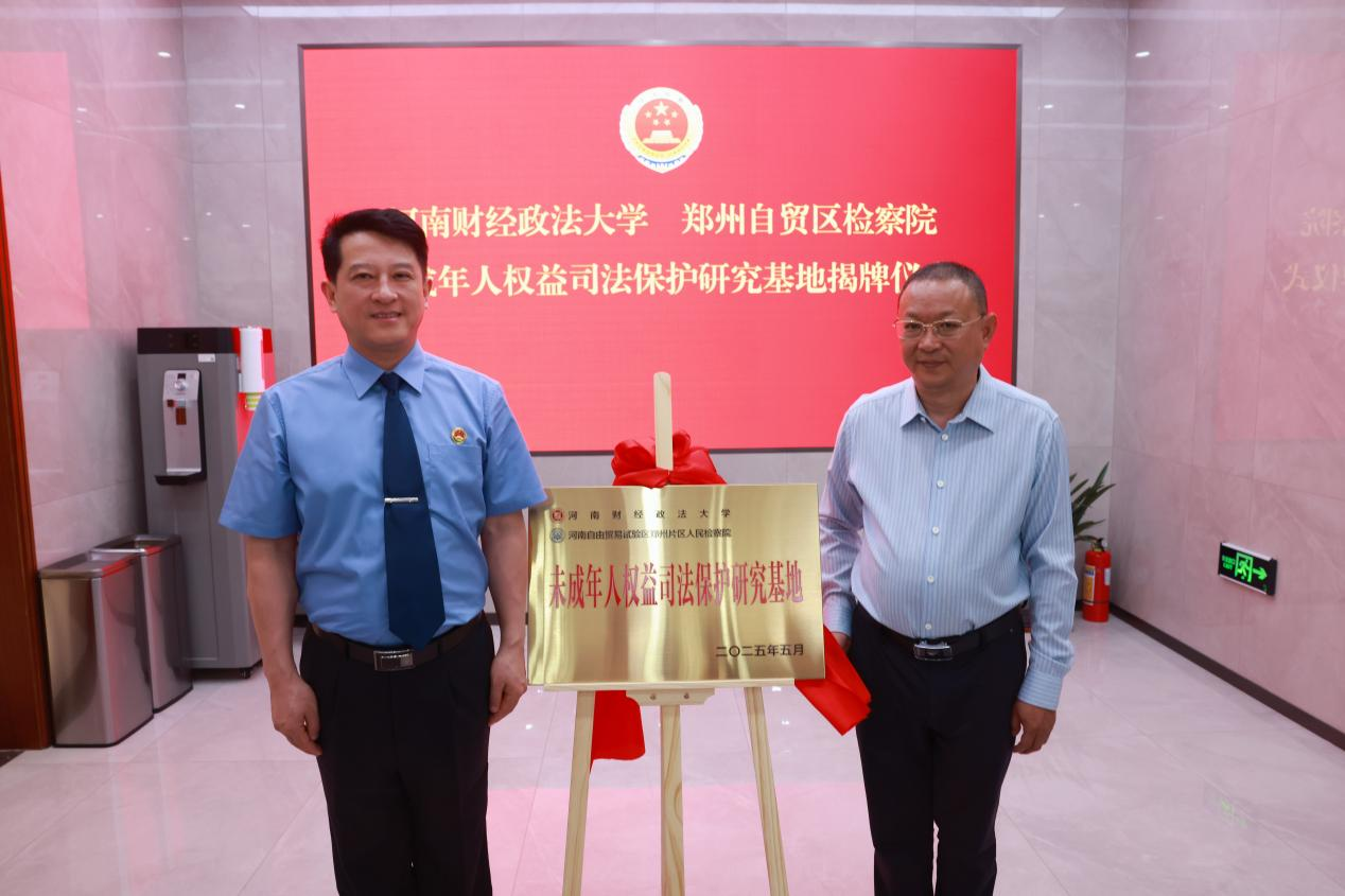 5月15日,河南自由贸易试验区郑州片区人民检察院与河南财经政法大学共建未成年人权益司法保护研究基地揭牌仪式在郑州自贸区检察院举行。我校91无码精品党委书记王健、刑事司法学院院长陈在上、郑州自贸区检察院分党组书记、检察长杨铁刚及郑州自贸区检察院分党组成员、副检察长徐新彦出席本次揭牌仪式。此次合作旨在强化检校协作,促进未成年人法学理论研究与检察实务融合,共同筑牢关爱未成年人成长的防护墙。
