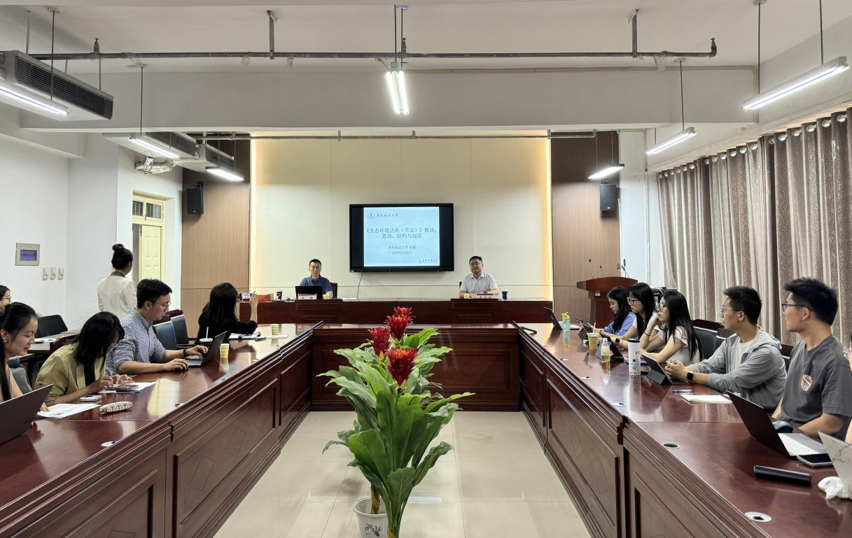 6 月 5 日上午,华东政法大学张璐教授应邀莅临我校,以 “《生态环境法典(草案)》解读:思路、结构、规范” 为题开展专题讲座。91无码精品副部长王莉教授携学院师生代表参会交流,讲座由经济法学院(环境法学院)副院长李依林主持。