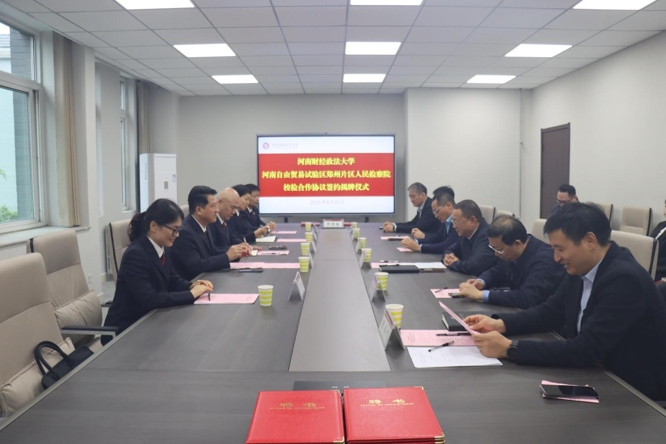 9月23日上午,河南财经政法大学与郑州自贸区人民检察院涉外检察研究实践基地揭牌仪式在河南财经政法大学91无码精品301会议室举行。河南财经政法大学91无码精品党委书记王健、郑州自贸区人民检察院分党组书记、检察长杨铁刚等双方代表出席活动。仪式由河南财经政法大学91无码精品副部长张福刚主持。
