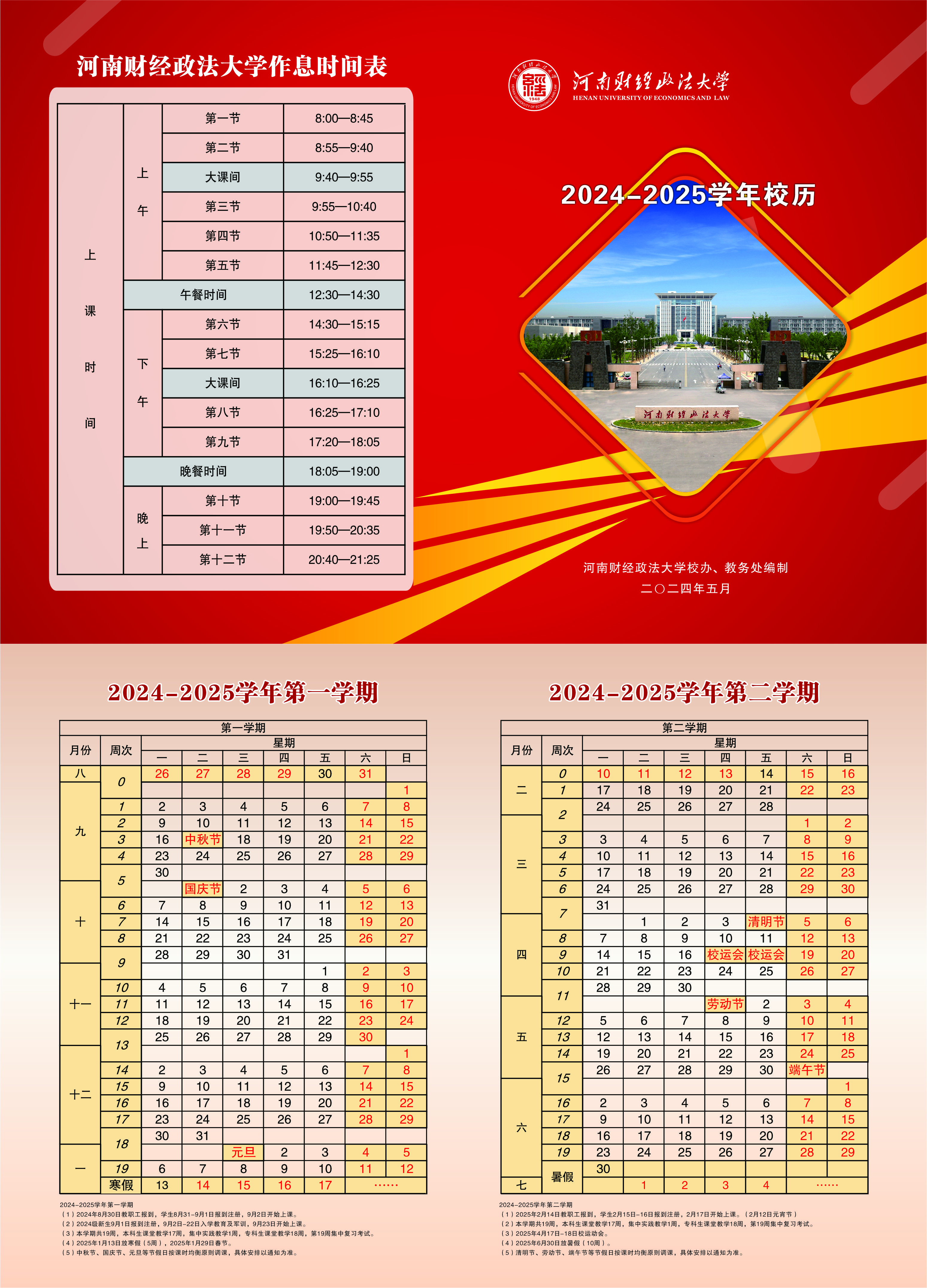 【校历】河南财经政法大学2024-2025学年校历